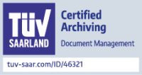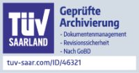 Die GoBD-Konformität unserer Software-Lösungen lassen wir uns regelmäßig durch eine TÜV-Zertifizierung bestätigen. Mit dem freiwilligen TÜV-Gütesiegel „Geprüfte Archivierung“ wird testiert, dass die archivierten Daten, Dokumente und deren Inhalte zuverlässig und compliance-konform aufbewahrt werden können.